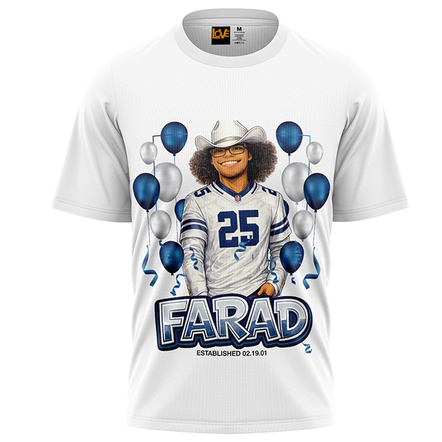 This specially designed t-shirt is for you to celebrate Ambassador (Captain) Farad’s 25th Birthday. All proceeds will benefit 444Love 501(3)c.